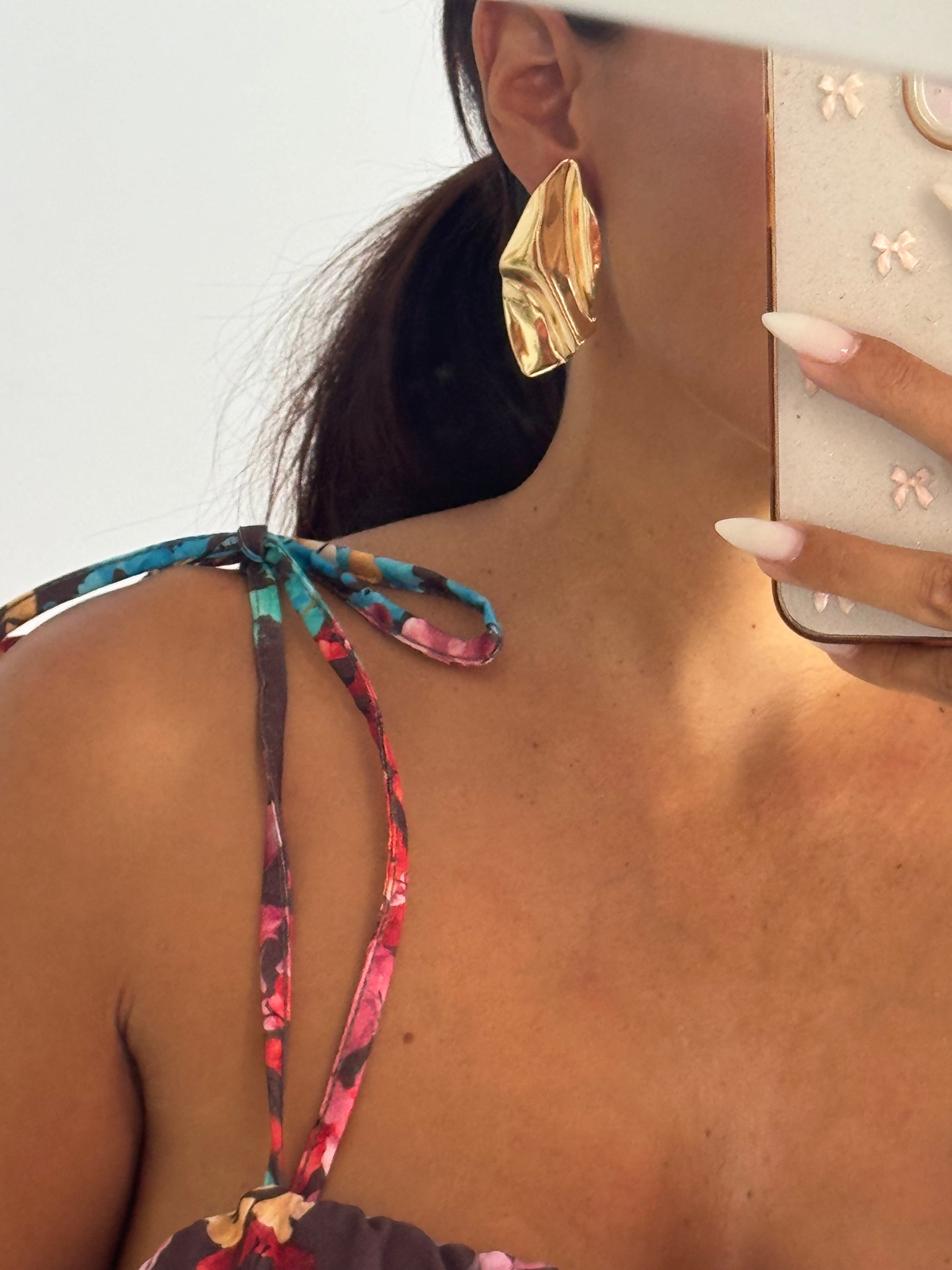 Pendiente hoja dorado