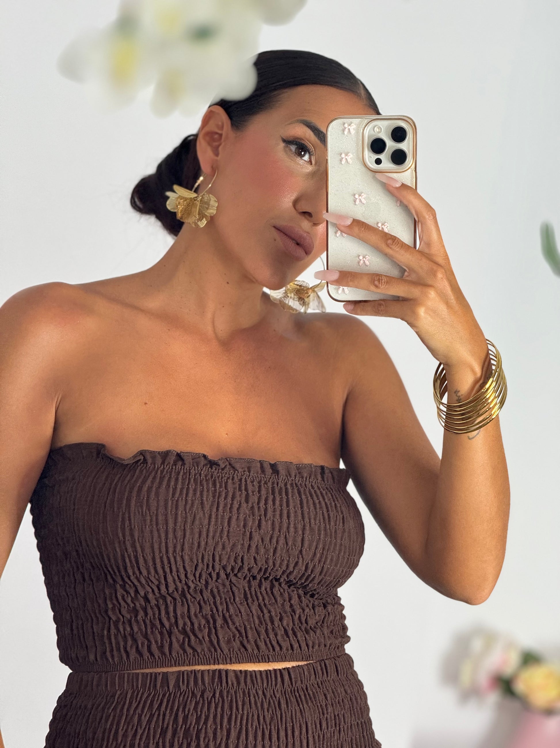 Pendiente hojas oro